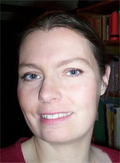 So here I am, with very discreet, but still make-up. Foundation, a little rouge and very little brown-gray eyeshadow.