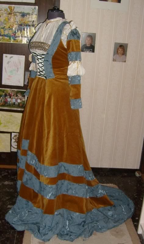 Dec. 28th, 2008 12:34 pmI've long ago decided to sell my 16th century saxon court dress; even after loosing weight there is no way my ribcage is going to fit inte that bodice - Maja and arthritis has changed it too much. And finally I had the energy to put it on my dress dummy to take some photos. Of course it doesn't fit the dress dummy - her boobs are hard and non-compressable, but at least you can see how it looks. I ought to have ironed it too, but I can't be bothered. I'm putting it up at Tradera, a swedish branch of eBay.